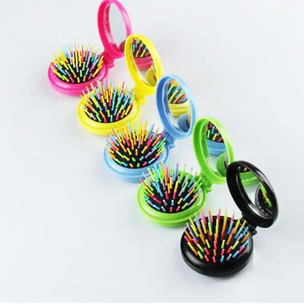 Premium 1 Pc Girls Functional Mini Folding Massage Comb Airbag Massage Round Travel Hair brush With Mirror